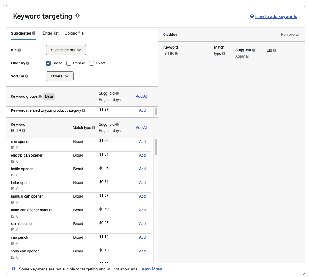 Campaign 5 – Amazon Suggested – Broad