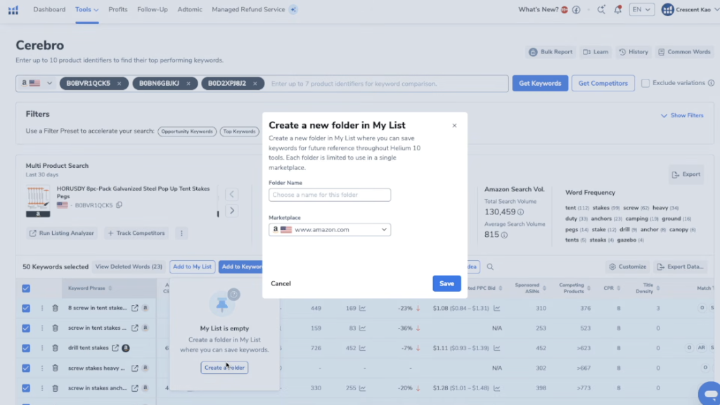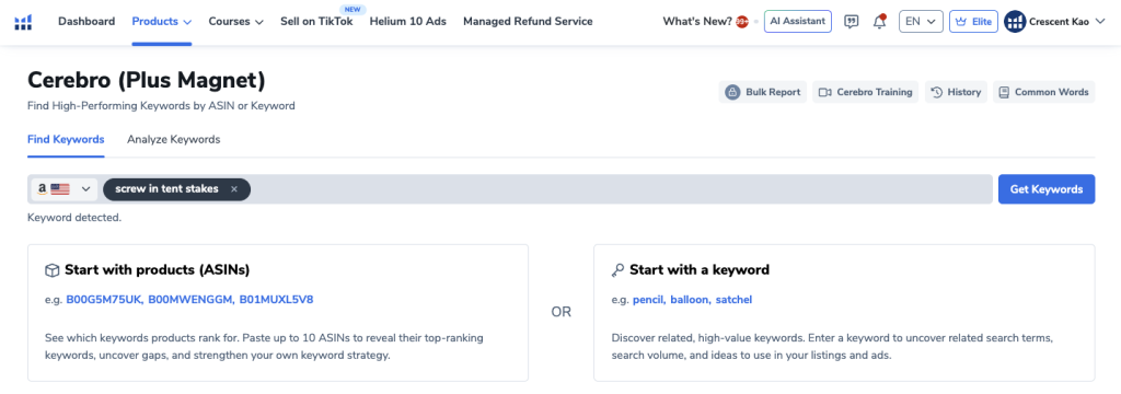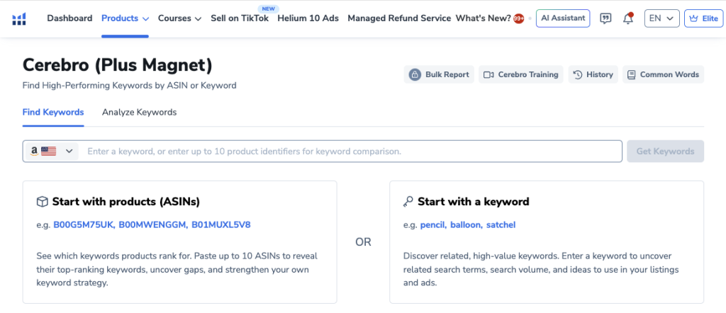 Cerebro recently merged with Helium 10’s Magnet tool, which means it now handles: