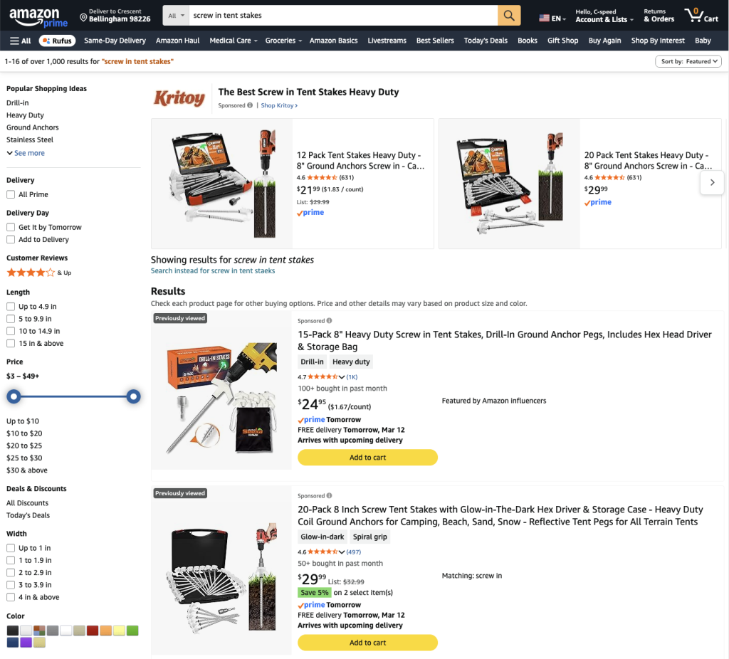 Even though these keywords are misspelled, Amazon’s search algorithm often still returns the correct products.