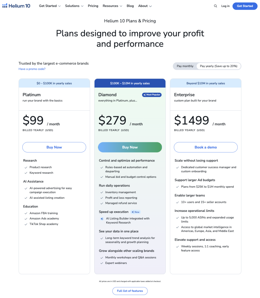 Helium 10 currently offers three main plans: