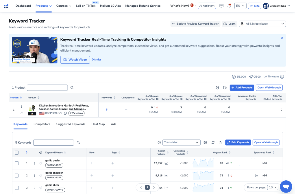 Keyword Tracker allows you to monitor how your product ranks over time.